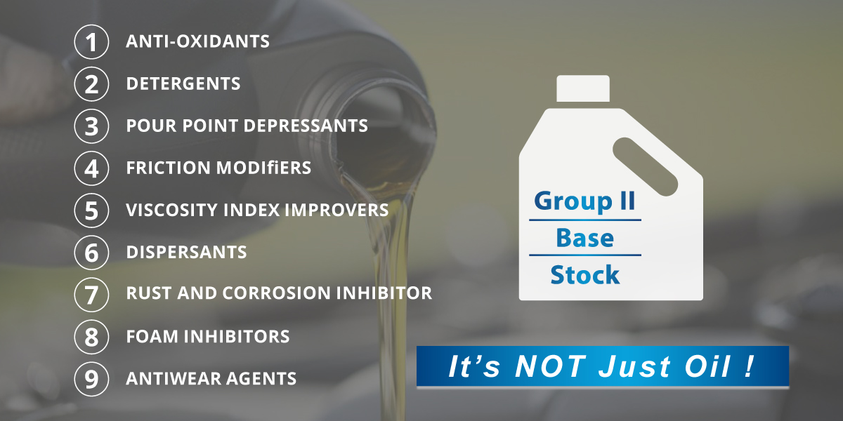 - Prevents oxidation products (gums) which have formed in the oil form sticking to metal parts.